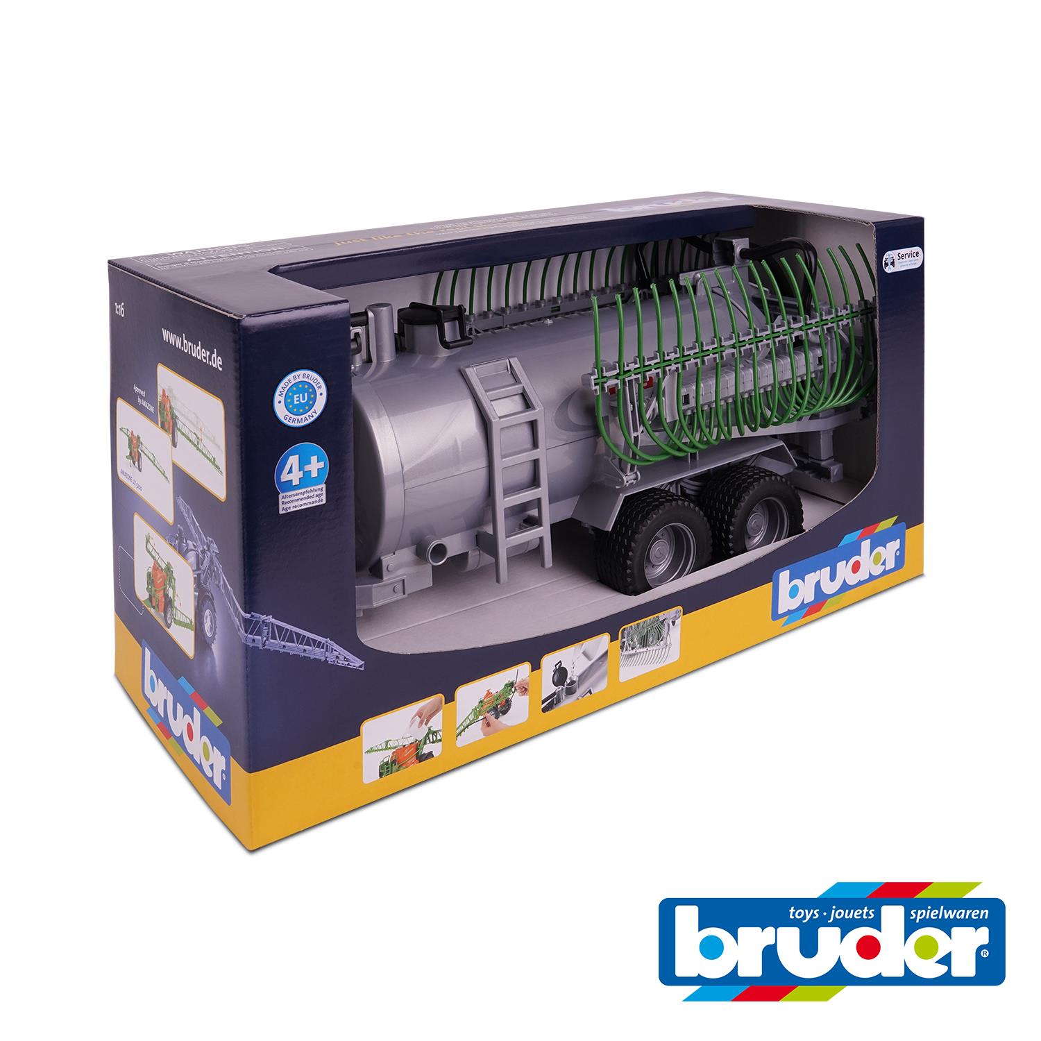 The barrel trailer with spread tubes from Fliegl can be filled with water and closed with a lid. The barrel trailer can be emptied again through the discharge valve. The spread tubes can be folded in during drive mode. The barrel trailer with spread tubes is suitable for all tractors of the Profi series (not included).